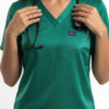 Uniforme médical moderne composé d’un haut à col V et d’un pantalon ajusté.