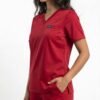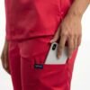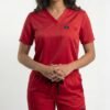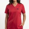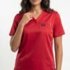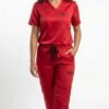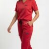 Uniforme médical moderne composé d’un haut à col V et d’un pantalon ajusté.